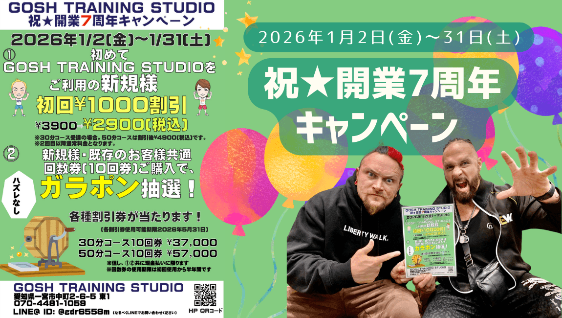 2026年開業7周年記念キャンペーン【1月2日(金)〜31日(土)】